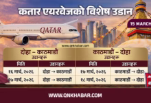 दोहा-कतार एयरवेजले मार्च १५ देखि १८ सम्मका लागि अद्यावधिक गरिएको सीमित उडान तालिका सार्वजनिक गरेको छ, जसमा काठमाडौँ का लागि…