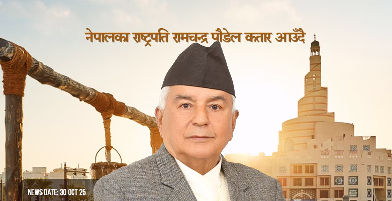 दोहा, कतार — नेपालका राष्ट्रपति रामचन्द्र पौडेल आउँदो नोभेम्बर ३ देखि ६ सम्म कतारको आधिकारिक भ्रमणमा आउँदै हुनुहुन्छ। उहाँले दोहामा आयोजना हुने ‘सेकेन्ड वर्ल्ड समिट फर सोसल डेभलपमेन्ट’ मा सहभागी हुने कार्यक्रम रहेको छ।