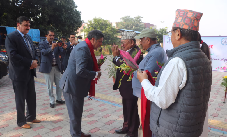 नेपालका लागि पाकिस्तानका राजदूत अब्ररर एच हास्मीलाई मङ्गलबार चितवनको भरतपुर आँखा अस्पतालमा स्वागत गरिँदै । तस्बिरः रासस
